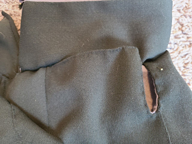 It's never the most fun to have to go back in and make an alteration you weren't expecting, but I wanted to get it right. With the fit of the fall adjusted, I was able to sew the waistbands on. I'm not quite sure what happened next, but something went terribly wrong. I sewed on the waistbands as the instructions dictated, but when I did a fitting the next morning to confirm that no changes needed made to the leg openings before I sewed on the knee bands, everything was wrong.